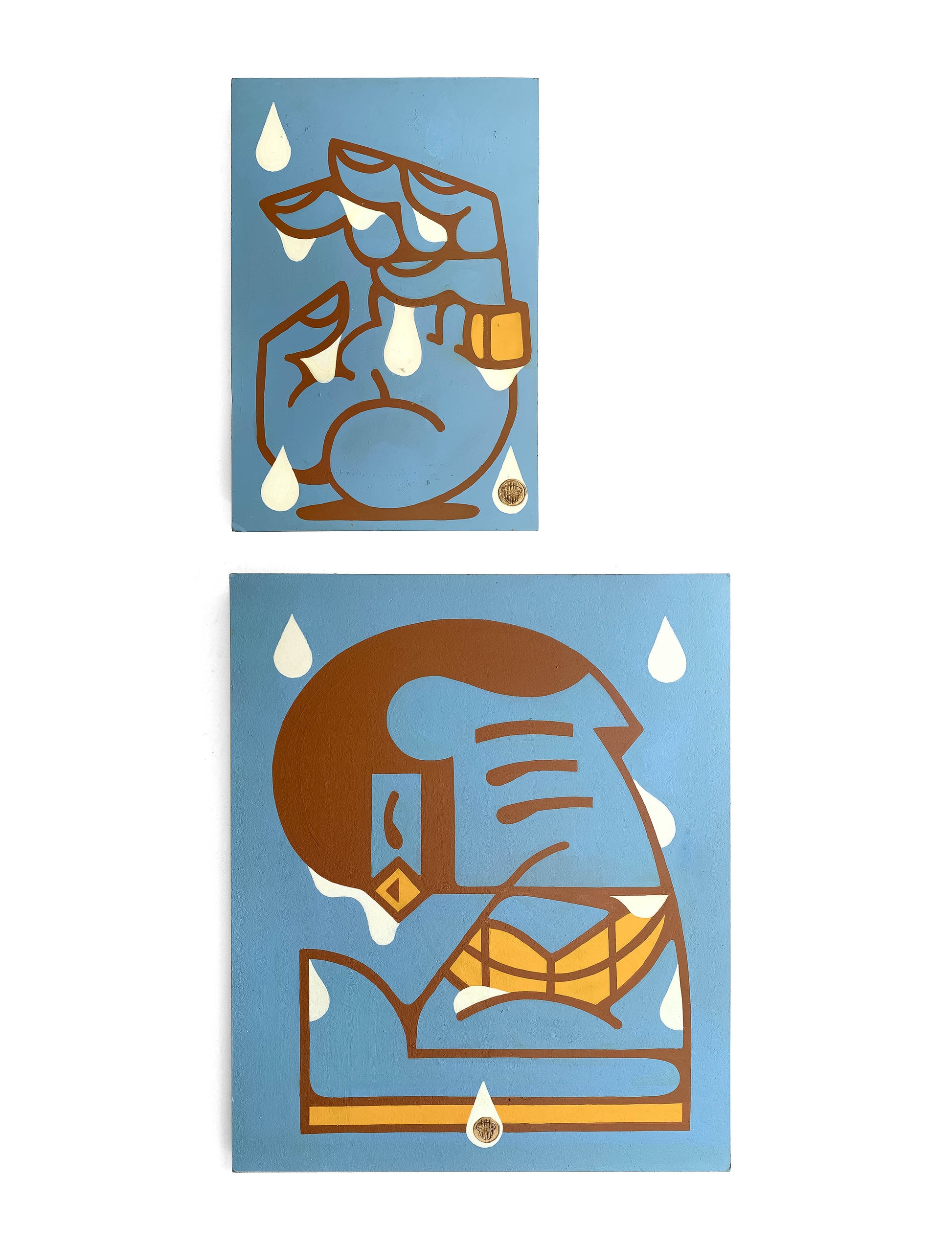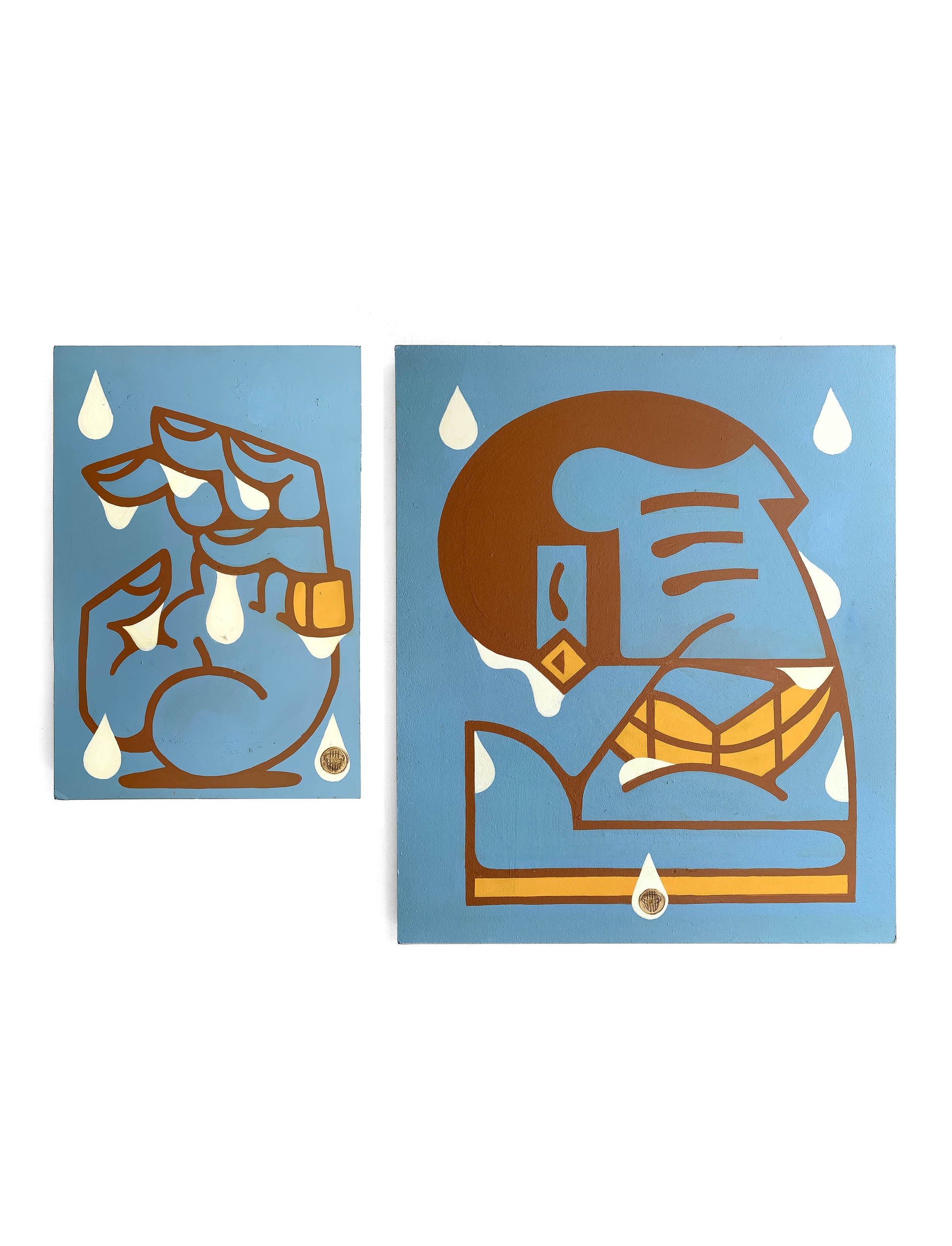 Pincel y Aerosol sobre madera. Enmarcado cajón.